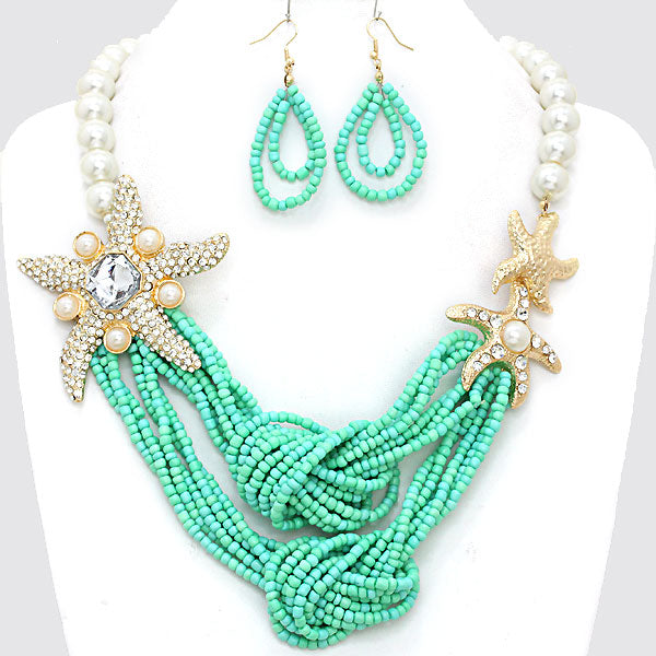 • Chunky Crystal Starfish Seed Bead Pearl Necklace