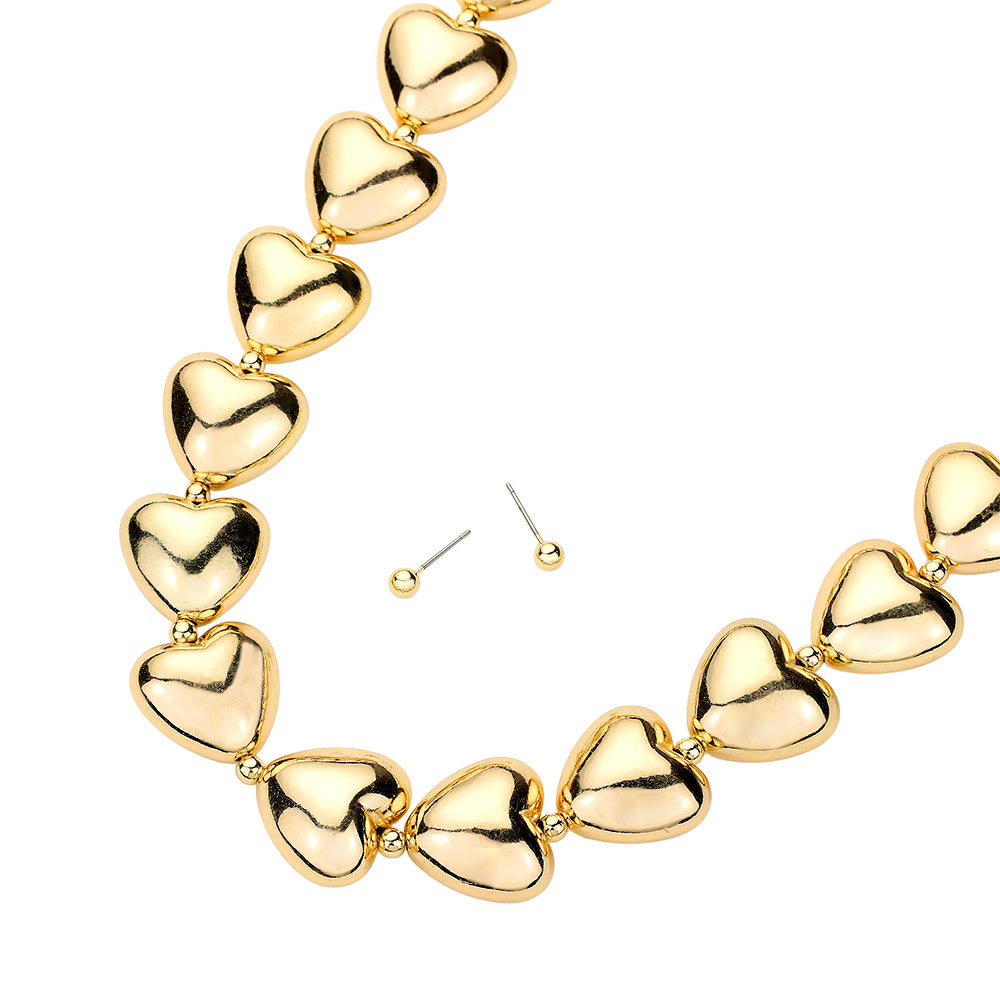 Statement necklace featuring bold heart links and matching stud earrings. A perfect accessory to add a romantic and stylish touch to your everyday or evening look.