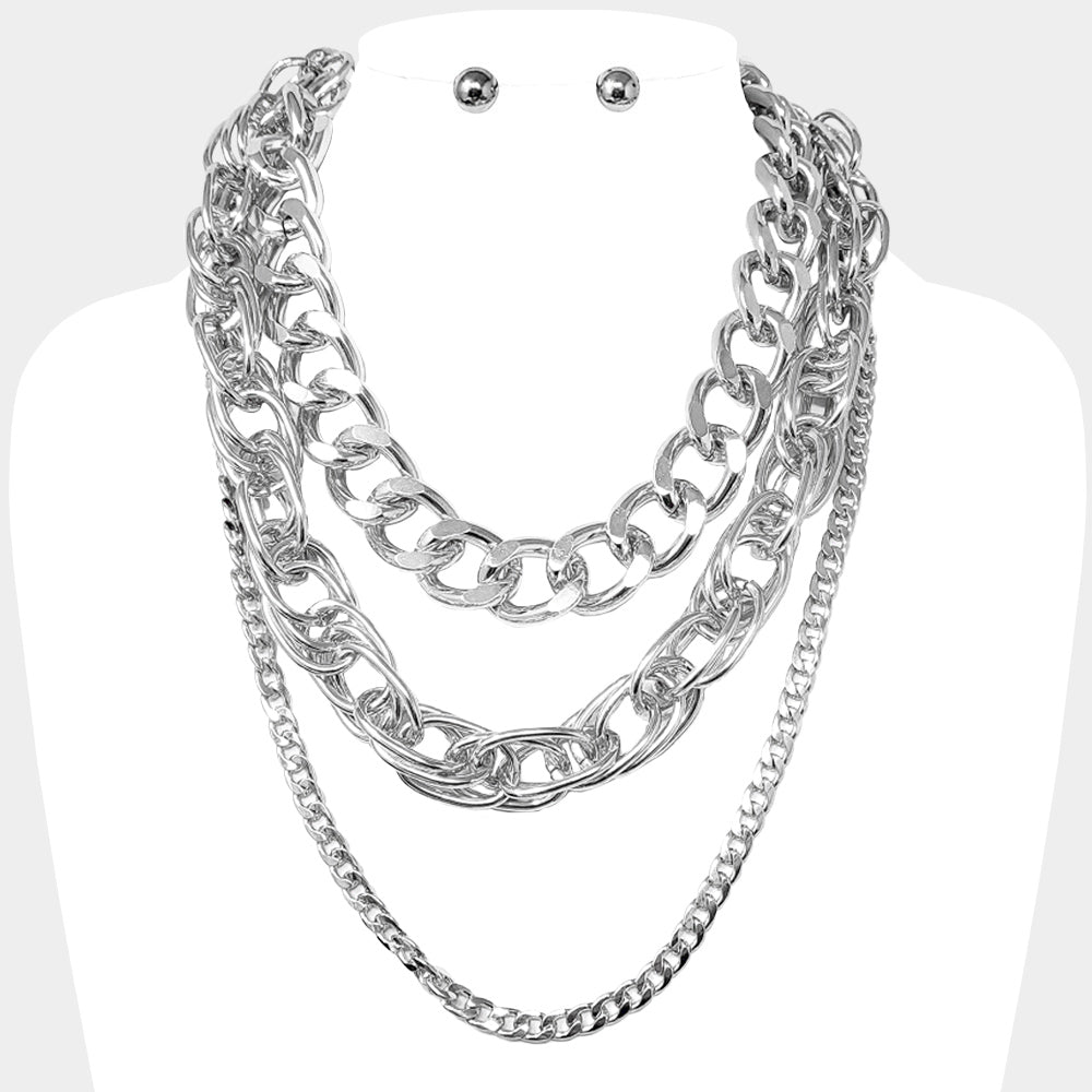 iLLASPARKZ Chunky Metal Layered Chain Statement Necklace