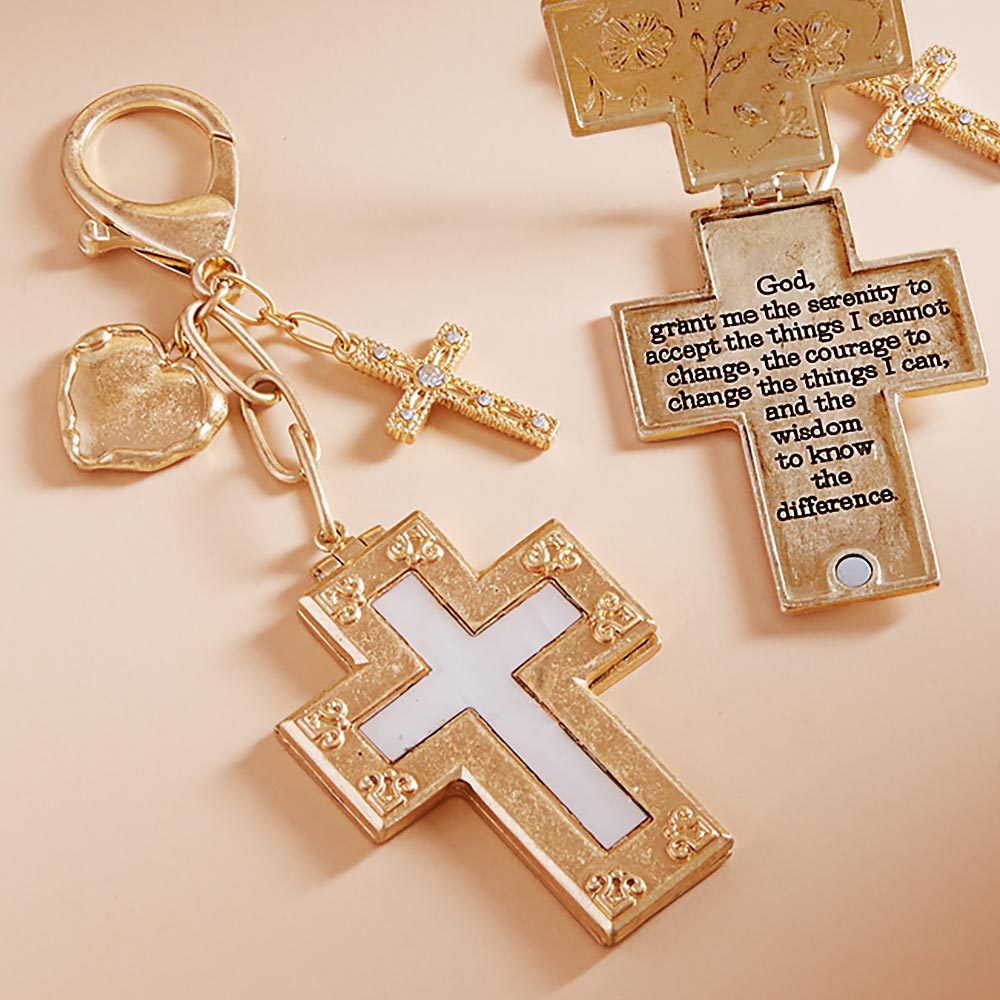 iLLASPARKZ Cross Religious Message Engraved Heart Charm Keychain / Bag Charm