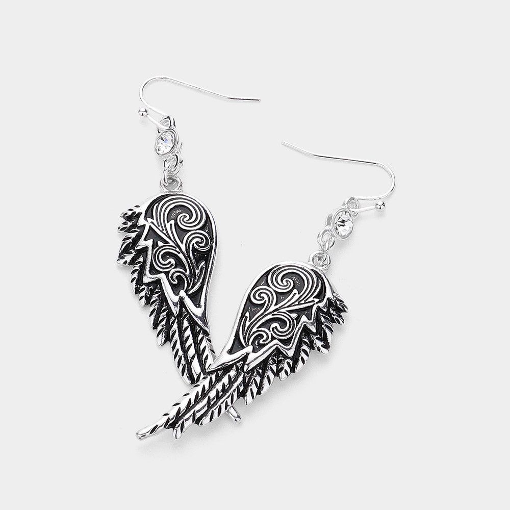 iLLASPARKZ Crystal Accented Metal Angel Wing Drop Earrings