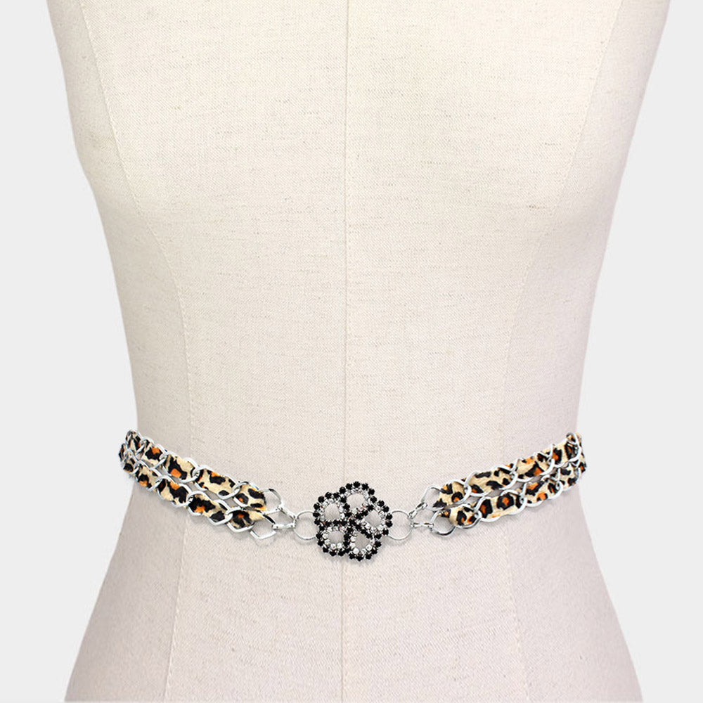 iLLASPARKZ Crystal Flower Centered Leopard Belt
