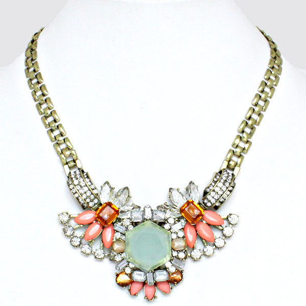 • Crystal Flower Rectangle Chain Necklace