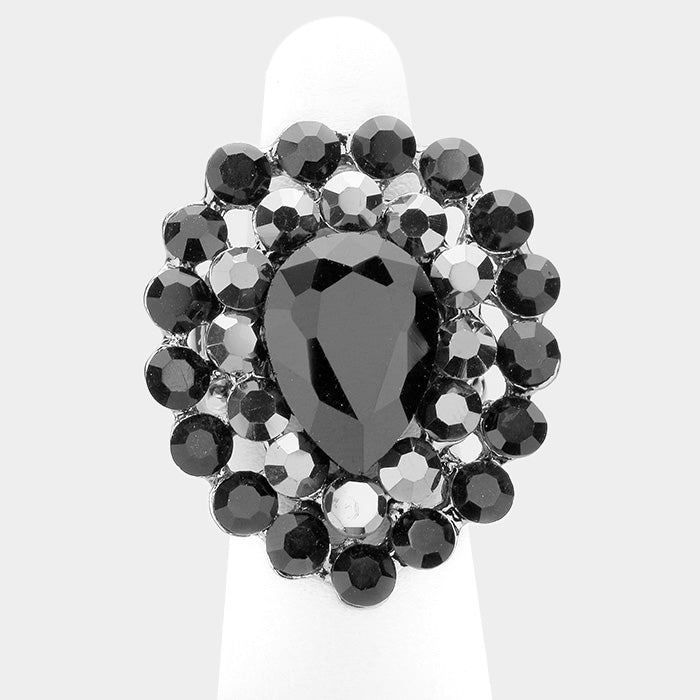 iLLASPARKZ Crystal Teardrop Centered Bubble Stone Trim Stretch Ring