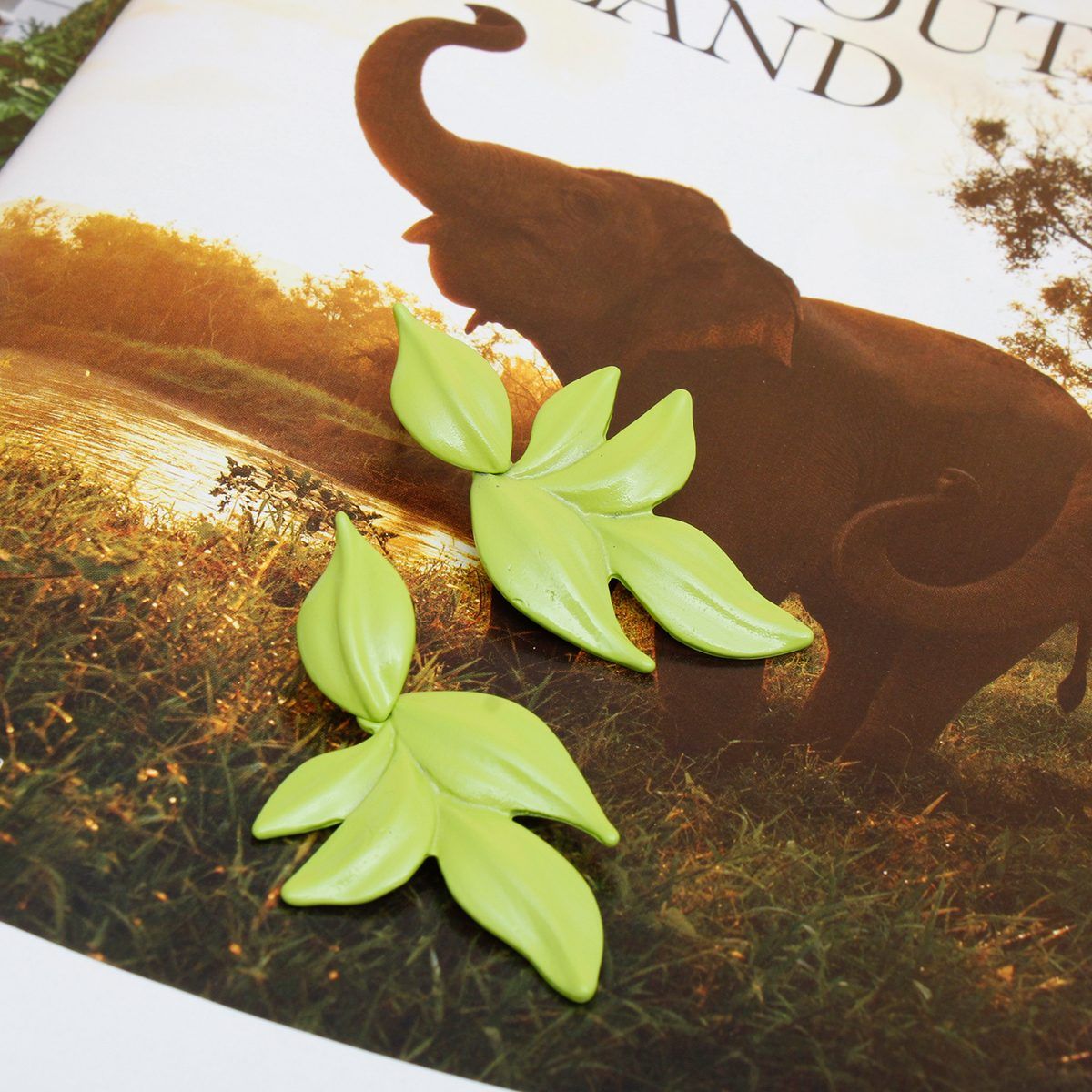 Women's Dangle Earrings. Vibrant Tropical Jungle Leaf Shaped Lime Green Coated Metal Hinge Dangle Earrings. Post Backing.