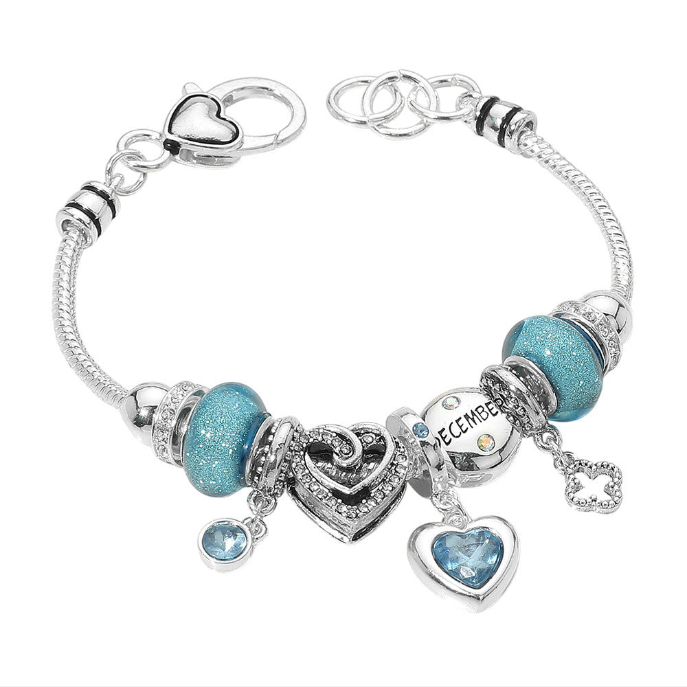 Celebrate December with this elegant birthstone charm bracelet featuring heart and crystal accents. A symbol of wisdom and wealth, it's the perfect gift or accessory to honor your birth month in style.