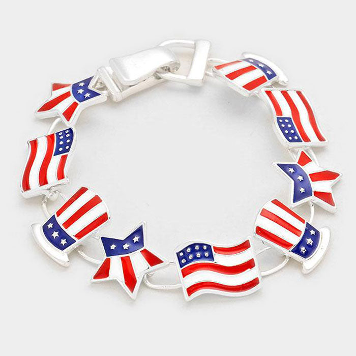 iLLASPARKZ Enamel American USA Flag Link Magnetic Bracelet