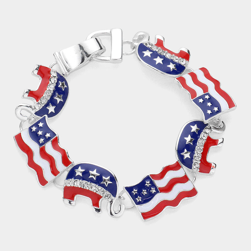 iLLASPARKZ Enamel American USA Flag Republican Elephant Link Magnetic Bracelet