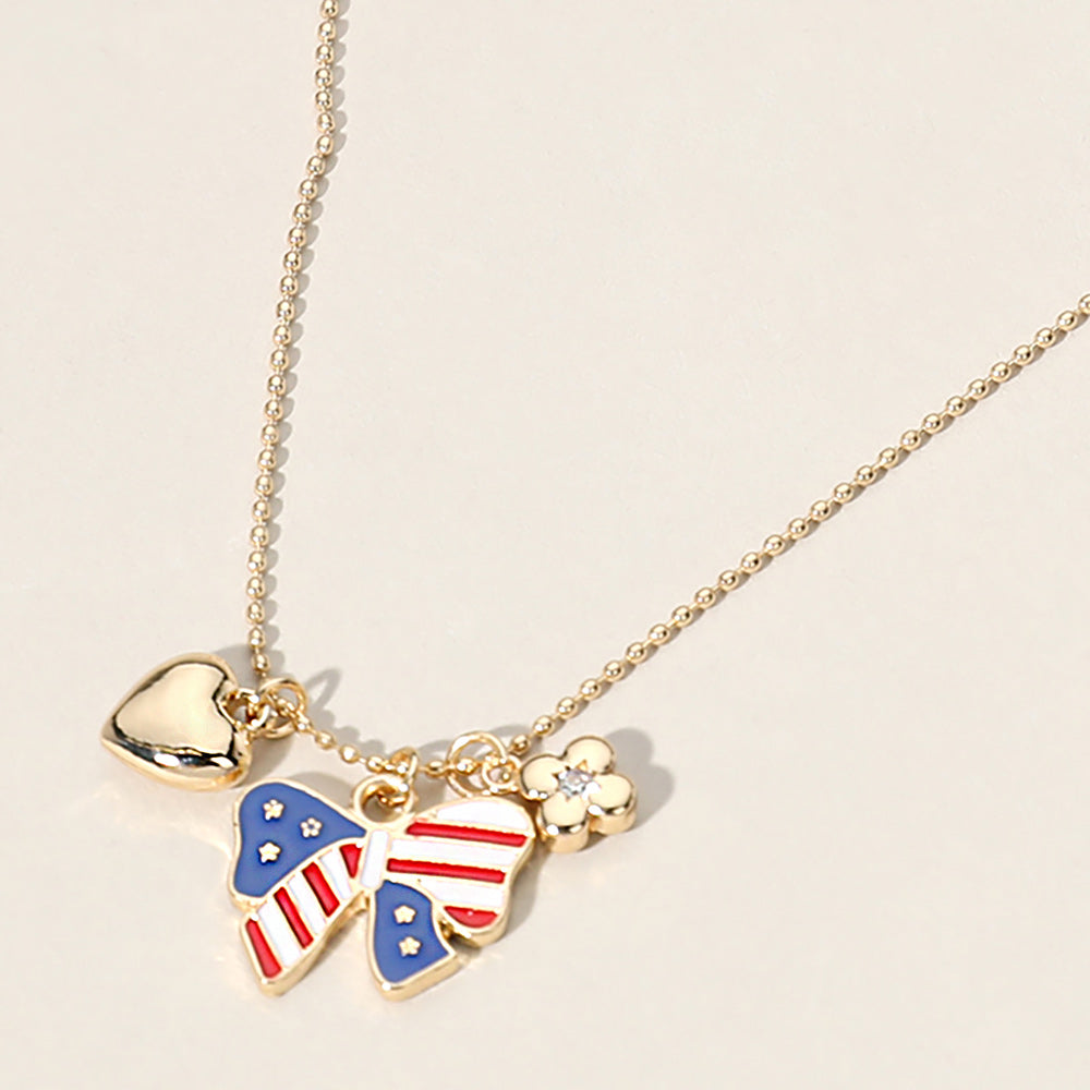 iLLASPARKZ Enamel Bow American USA Flag Metal Heart Flower Charm Pendant Bead Chain Necklace