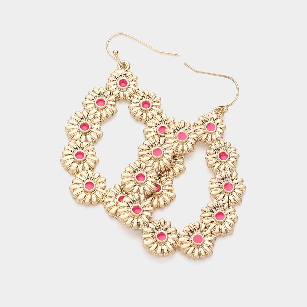 iLLASPARKZ Enamel Point Metal Flower Open Teardrop Dangle Earrings