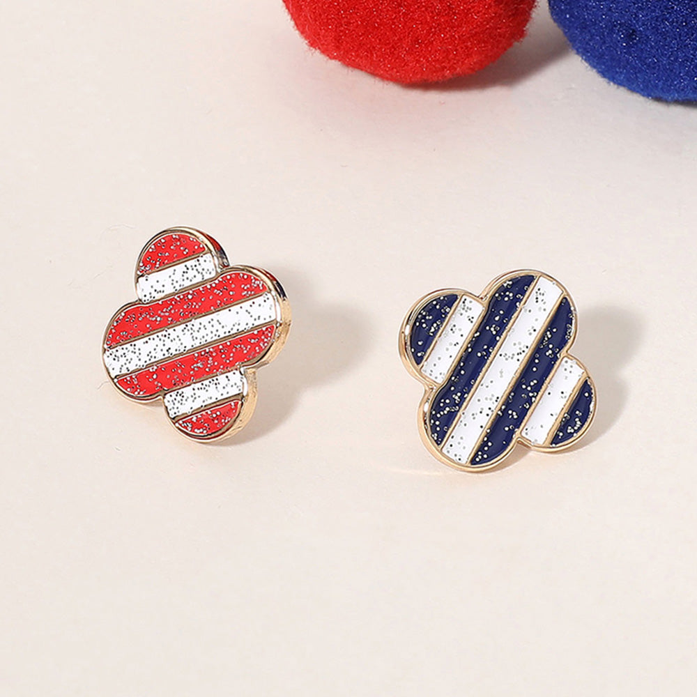iLLASPARKZ Enamel Sparkly American USA Flag Quatrefoil Stud Earrings