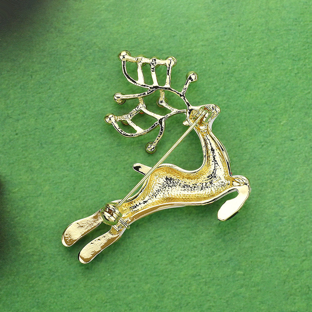 Add festive charm with this reindeer brooch featuring sculpted form and gem-accented antlers. A graceful accessory ideal for holiday ensembles, seasonal events, or as a unique winter gift.