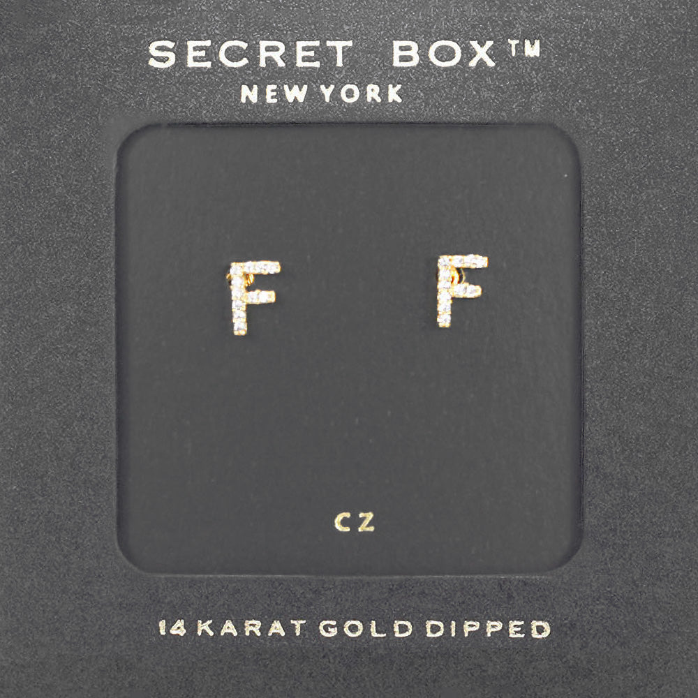 iLLASPARKZ -F- Secret Box _ 14K Gold Dipped CZ Monogram Stud Earrings