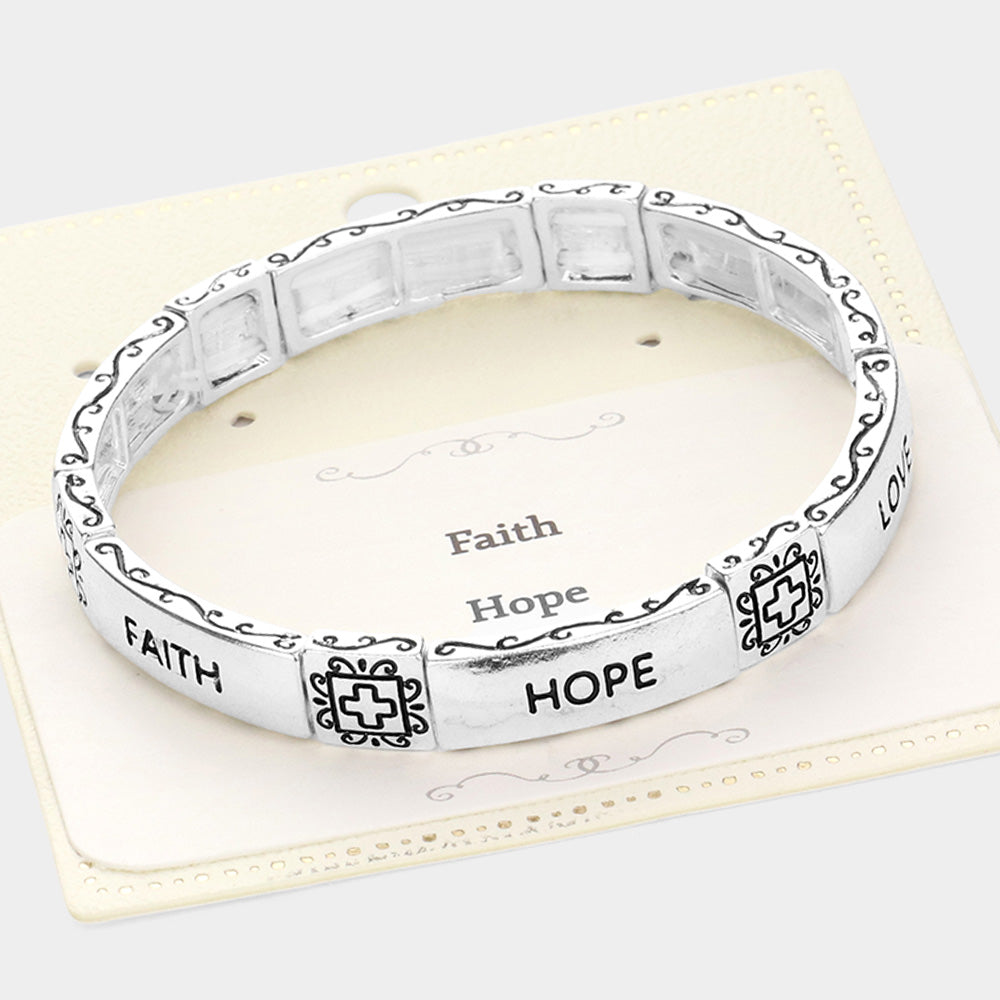 iLLASPARKZ Faith Hope Love Message Metal Stretch Bracelet