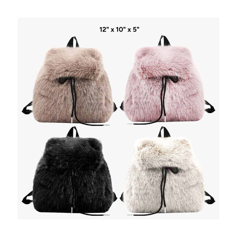 Upgrade your style with this cozy faux fur backpack, perfect for daily use or winter outings. Featuring a roomy main compartment, secure drawstring closure, and adjustable shoulder straps, it blends comfort with functionality for a trendy accessory that stands out year-round.