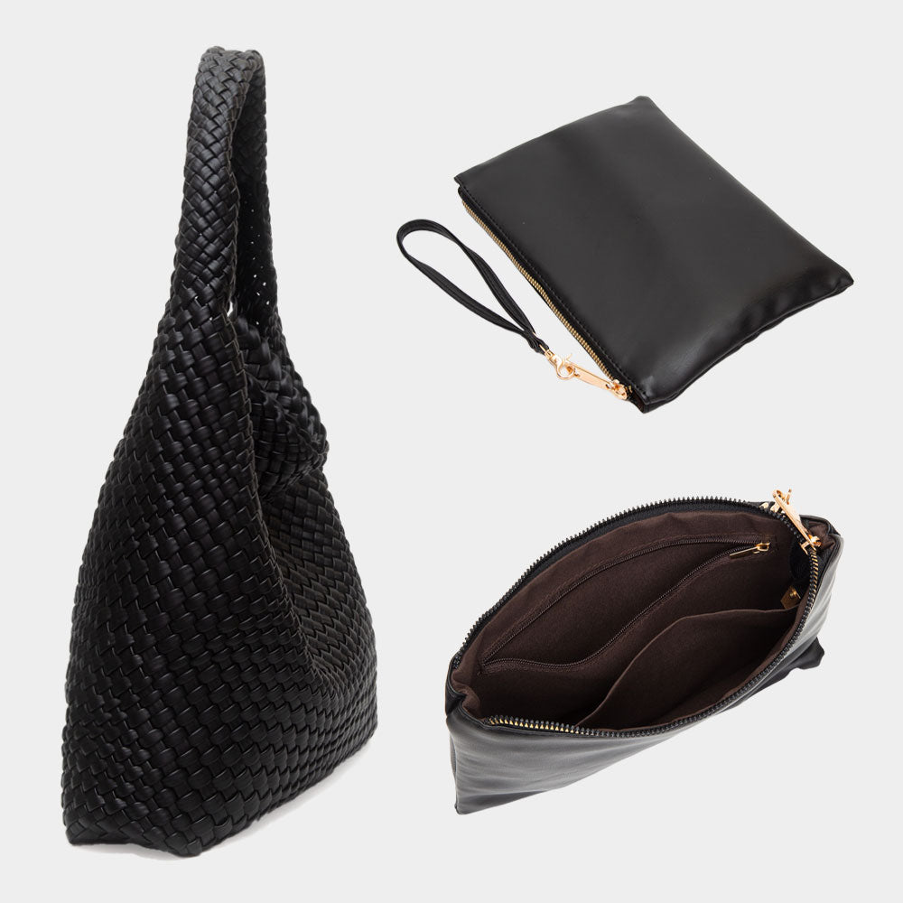 iLLASPARKZ Faux Leather Braided Hobo Shoulder Bag with Pouch