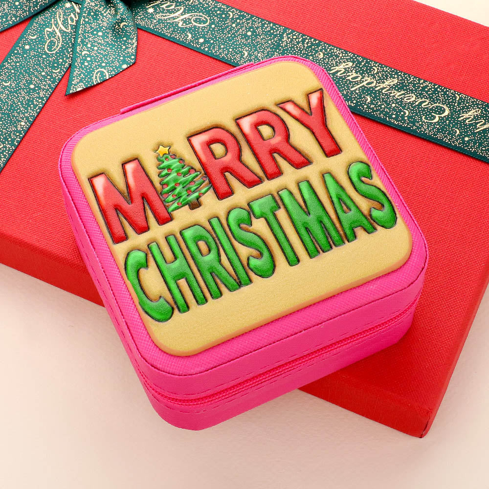 iLLASPARKZ Faux Leather Embossed Merry Christmas Message Portable Square Jewelry Box
