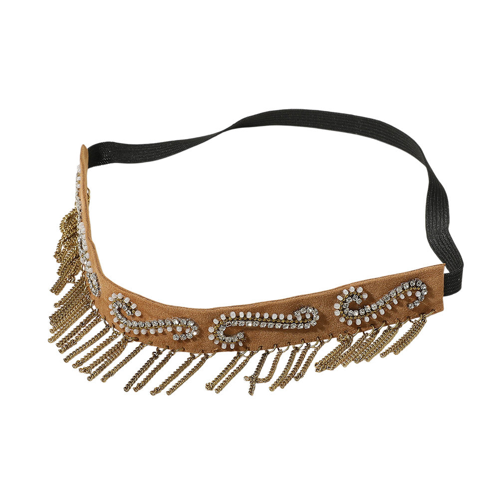 iLLASPARKZ Faux Suede Fringe Swirl Pattern Beaded Stretch Headband