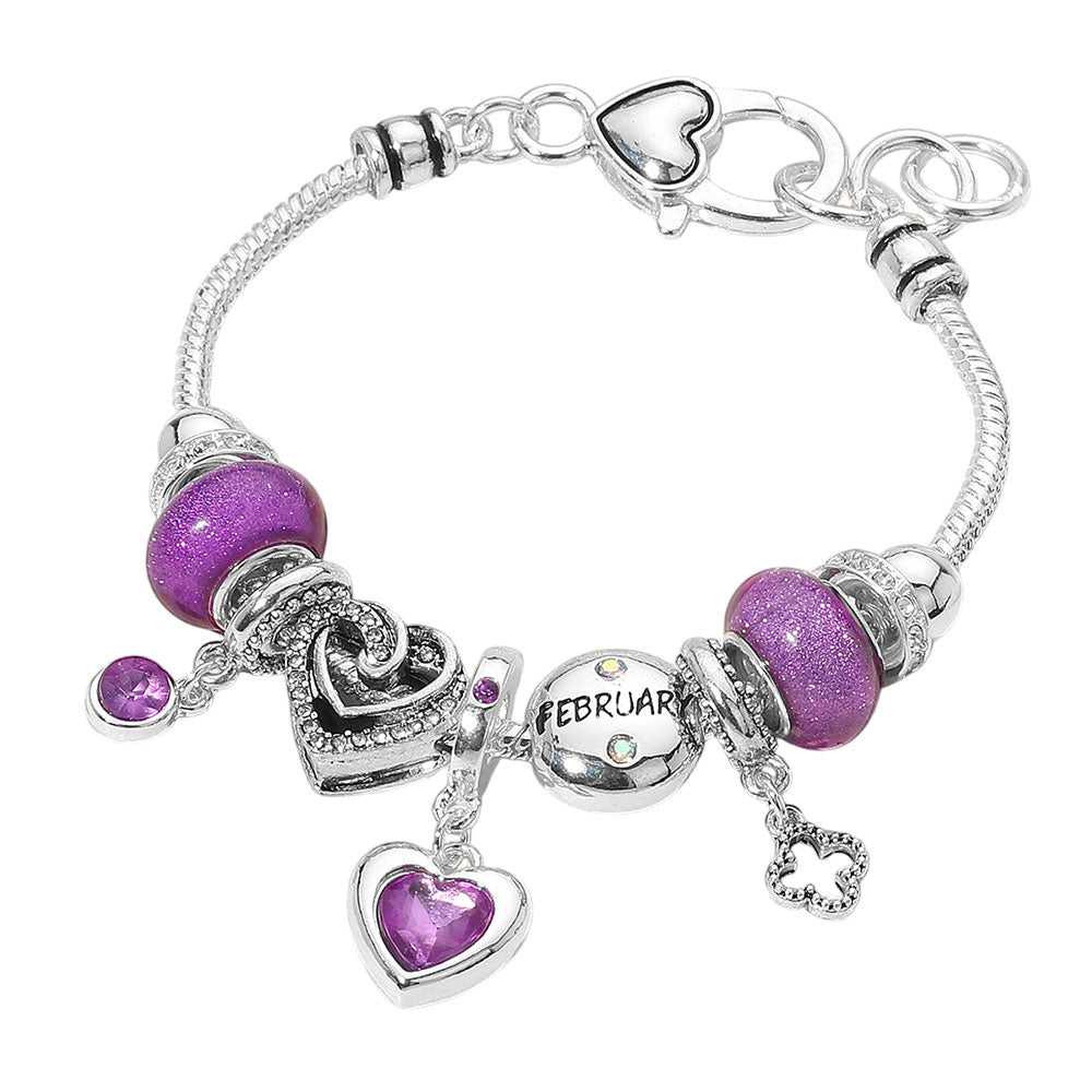 iLLASPARKZ February - Birthstone Heart Charm Multi Beaded Bracelet