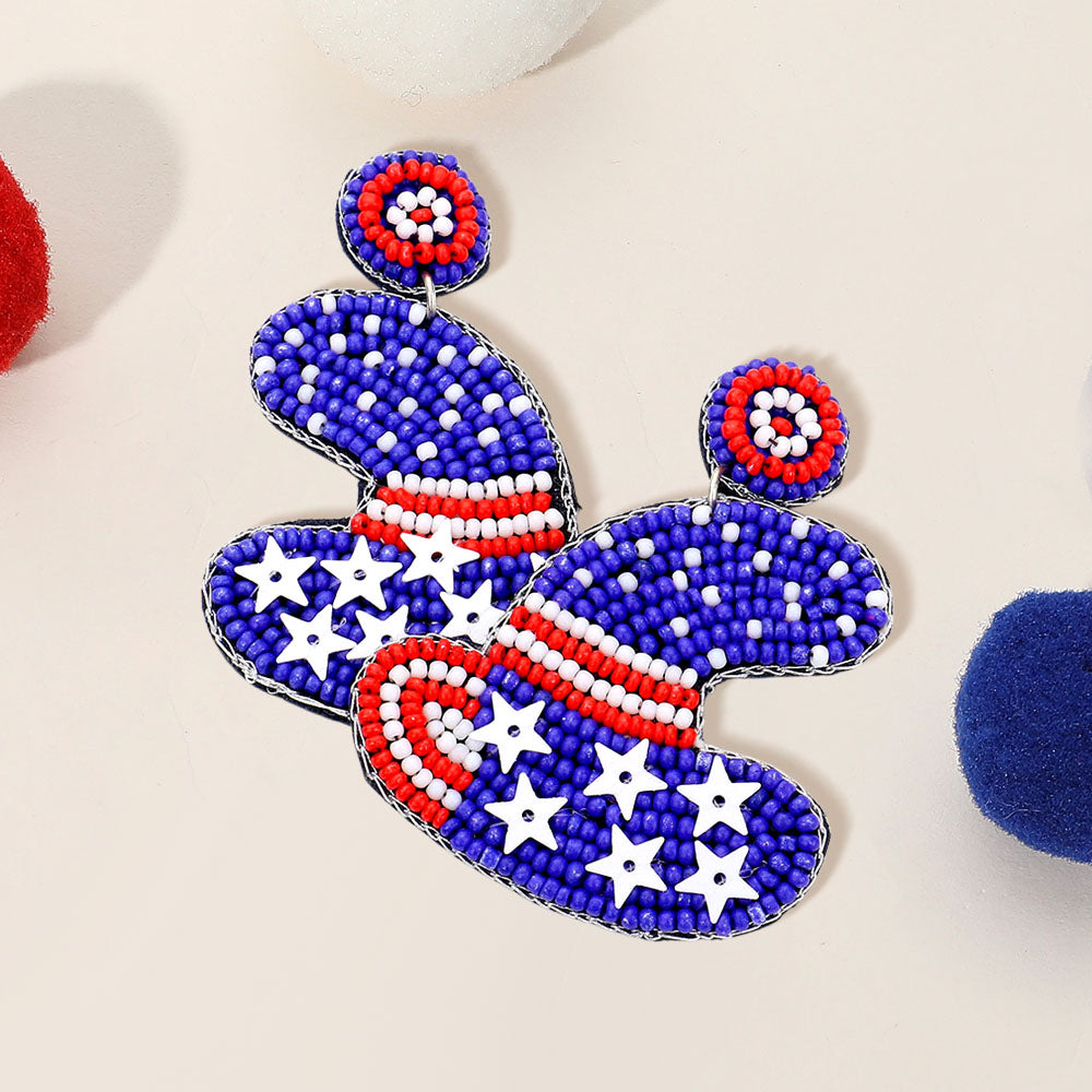 iLLASPARKZ Felt Back American USA Flag Cowboy Hat Beaded Dangle Earrings