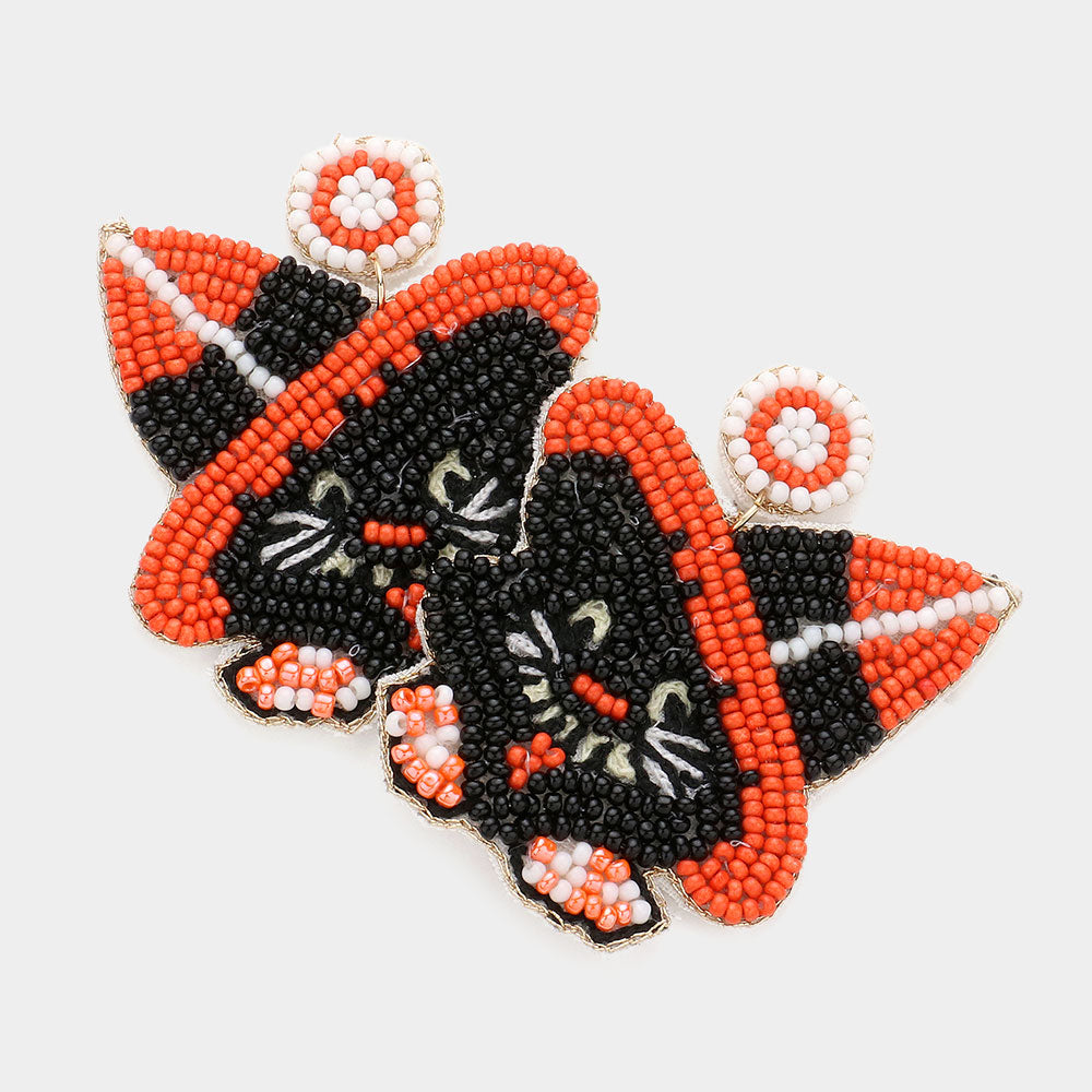iLLASPARKZ Felt Back Seed Beaded Witch Hat Cat Dangle Earrings