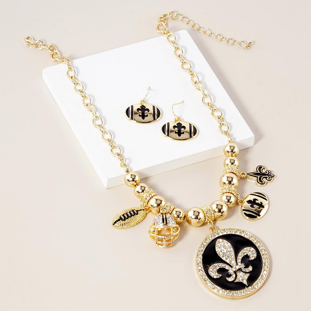 iLLASPARKZ Fleur de Lis Football Theme Charms Metal Chain Necklace