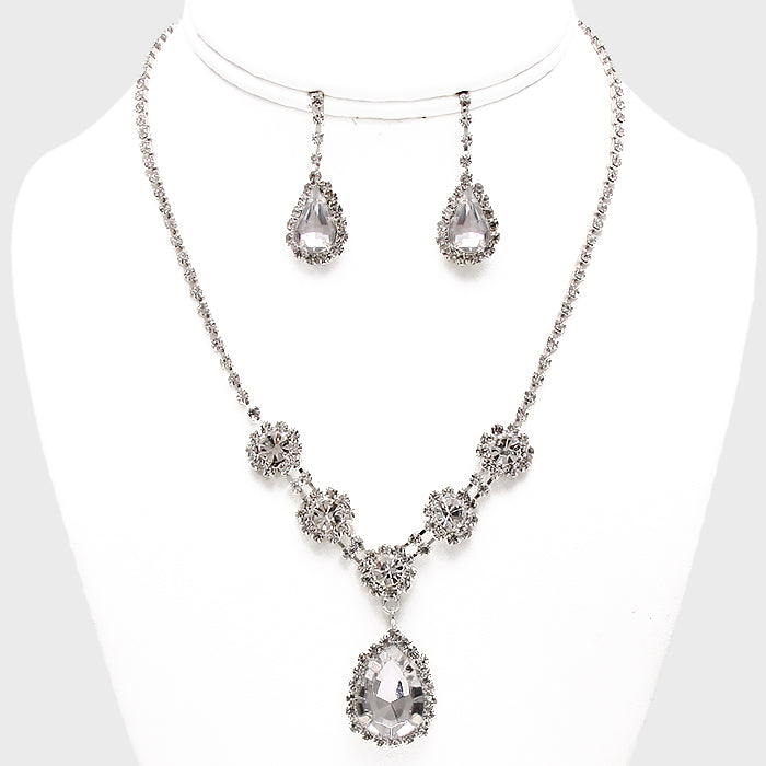 iLLASPARKZ Floral Crystal Rhinestone Teardrop Pendant Necklace