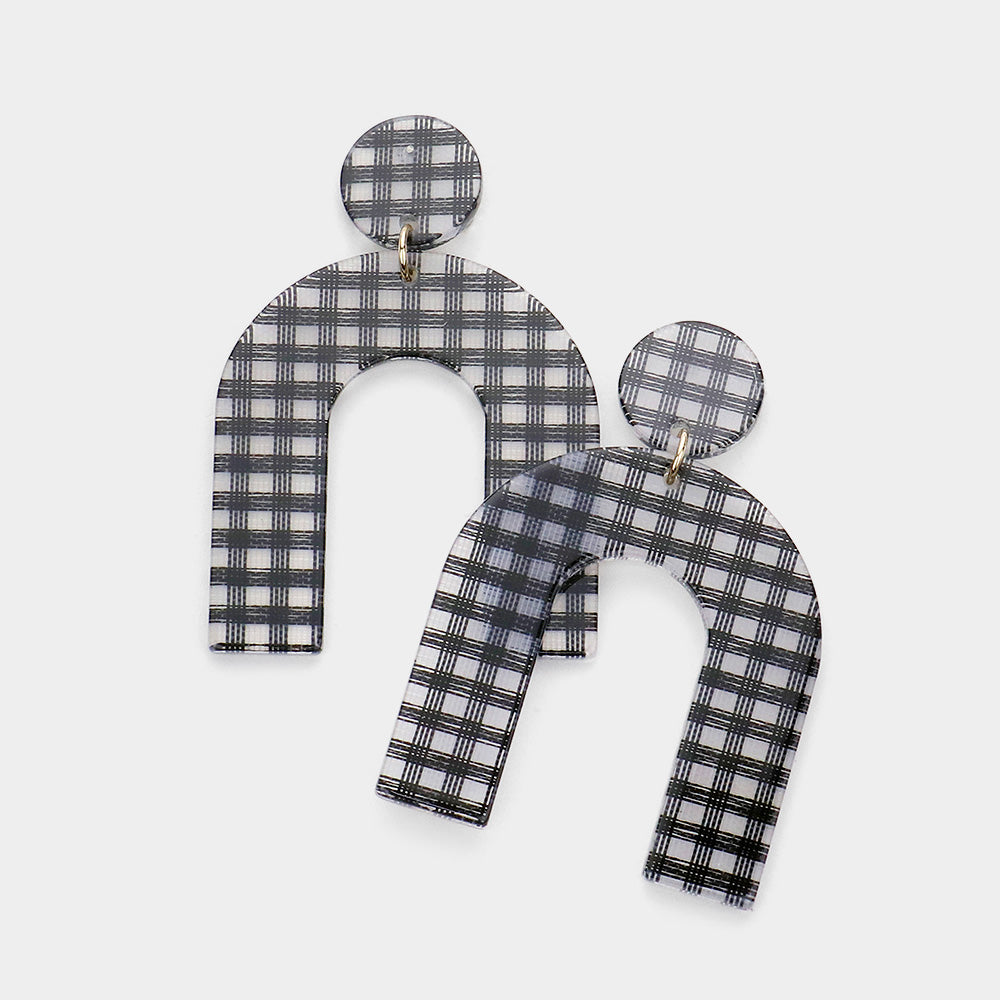 iLLASPARKZ Gingham Check Patterned Resin Arch Dangle Earrings
