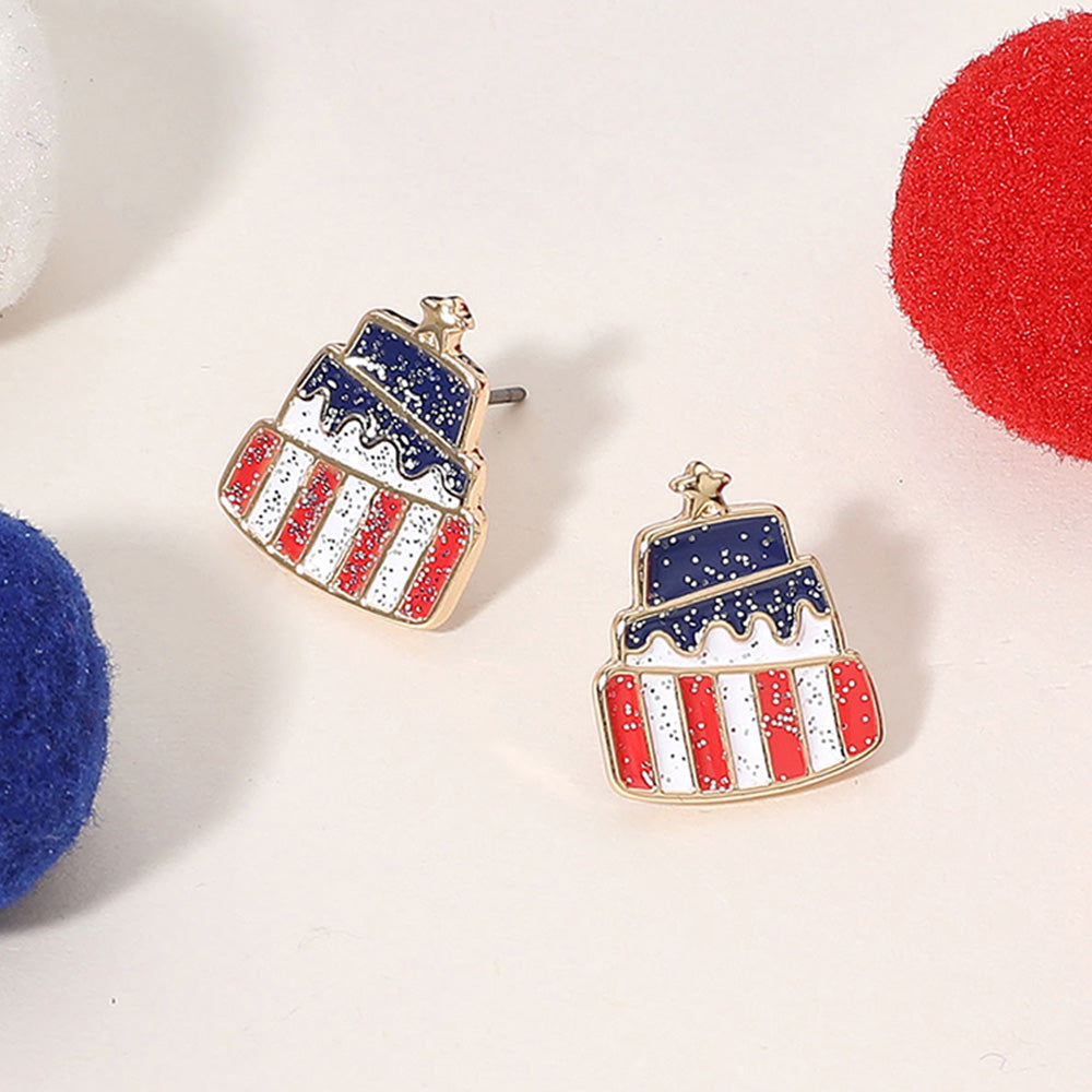 iLLASPARKZ Glittered Enamel American USA Flag Cake Stud Earrings