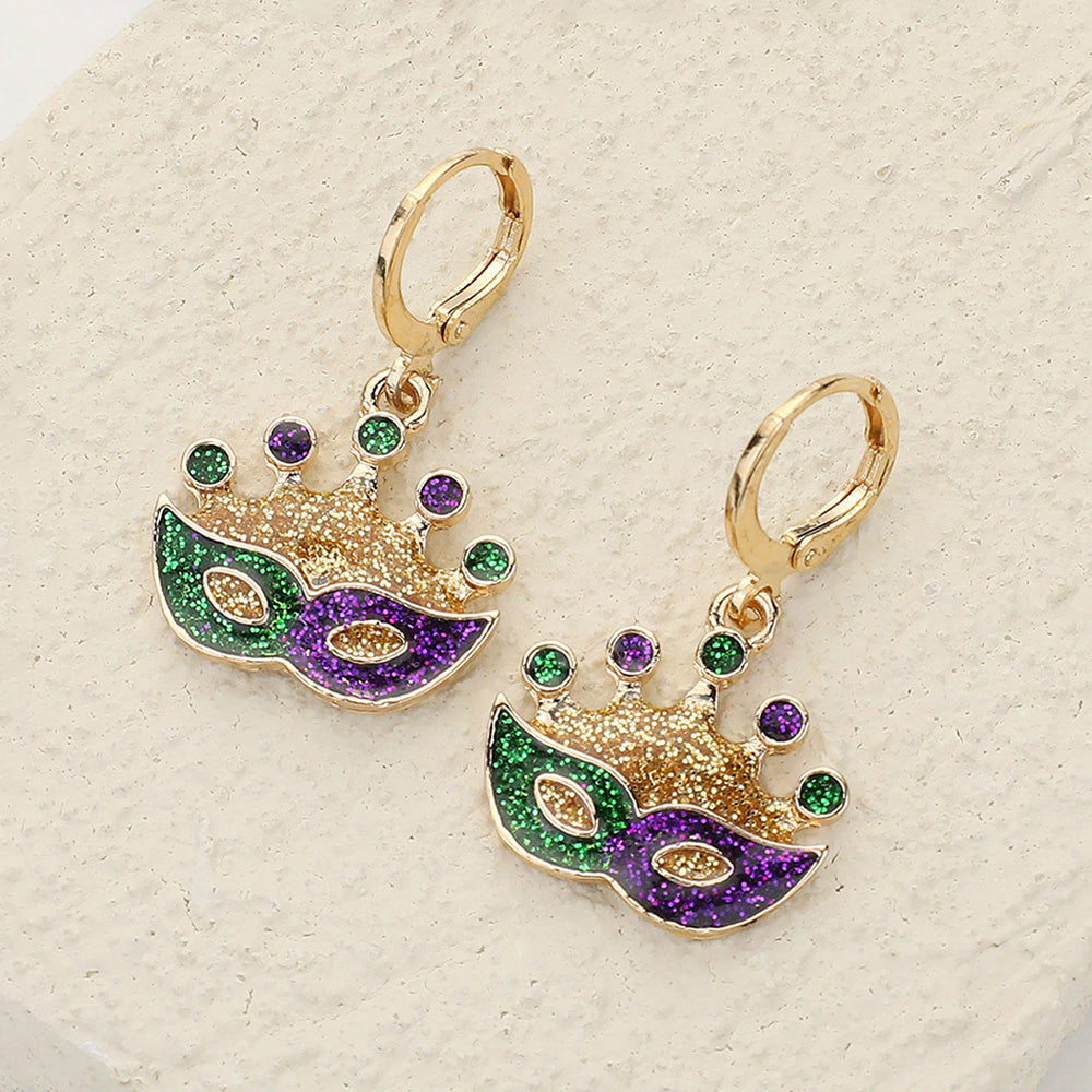 iLLASPARKZ Glittered Enamel Mardi Gras Mask Dangle Earrings
