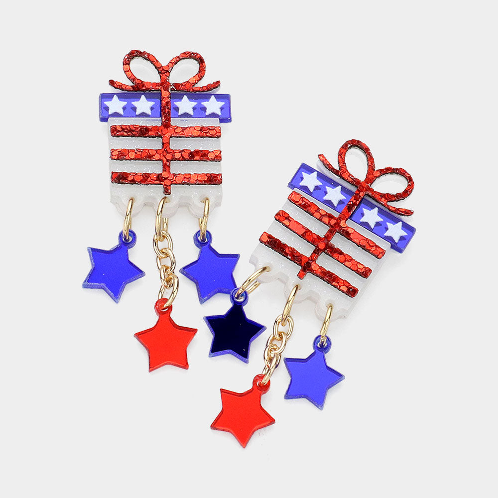 iLLASPARKZ Glittered Resin American USA Flag Gift Box Dangle Earrings