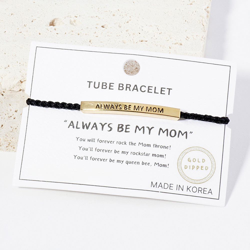 iLLASPARKZ Gold Dipped ALWAYS BE MY MOM Message Bar Pointed Rope Adjustable Cinch Pull Tie Bracelet