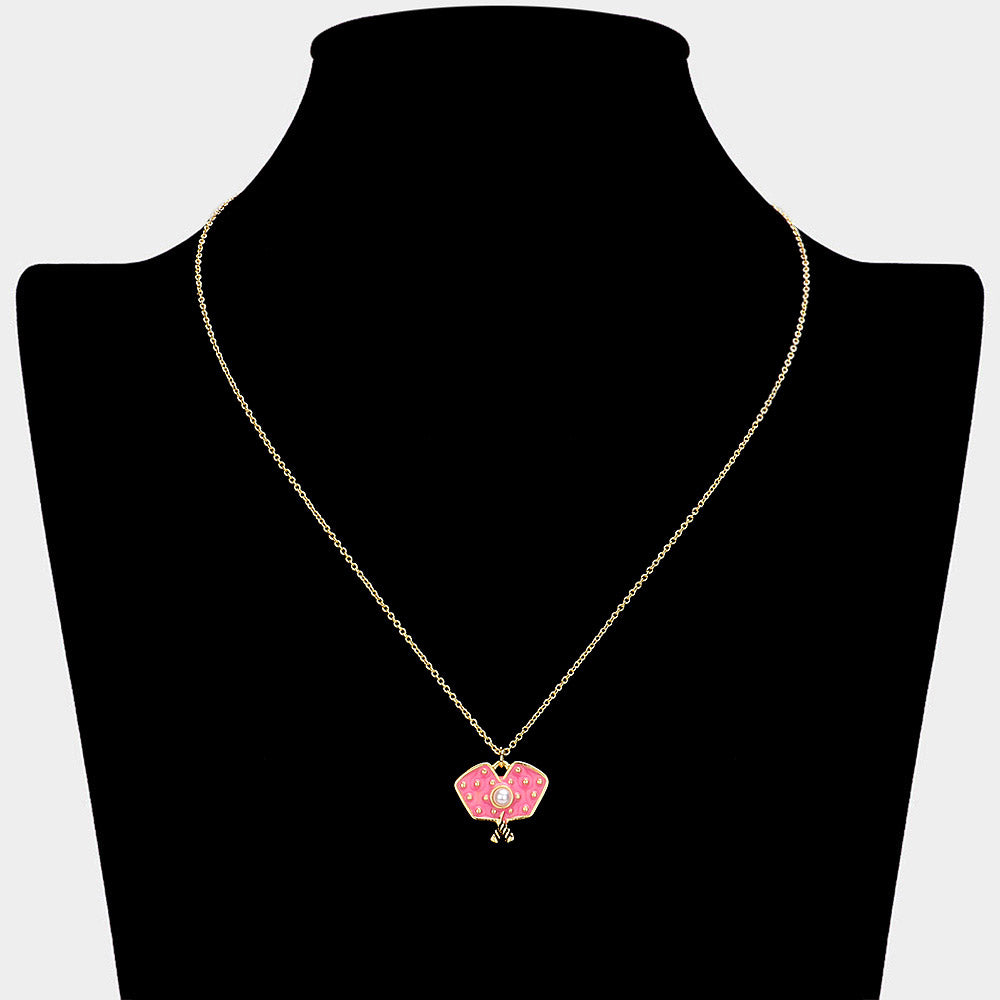 iLLASPARKZ Gold Dipped Pearl Pointed Enamel Pickleball Paddle Pendant Necklace