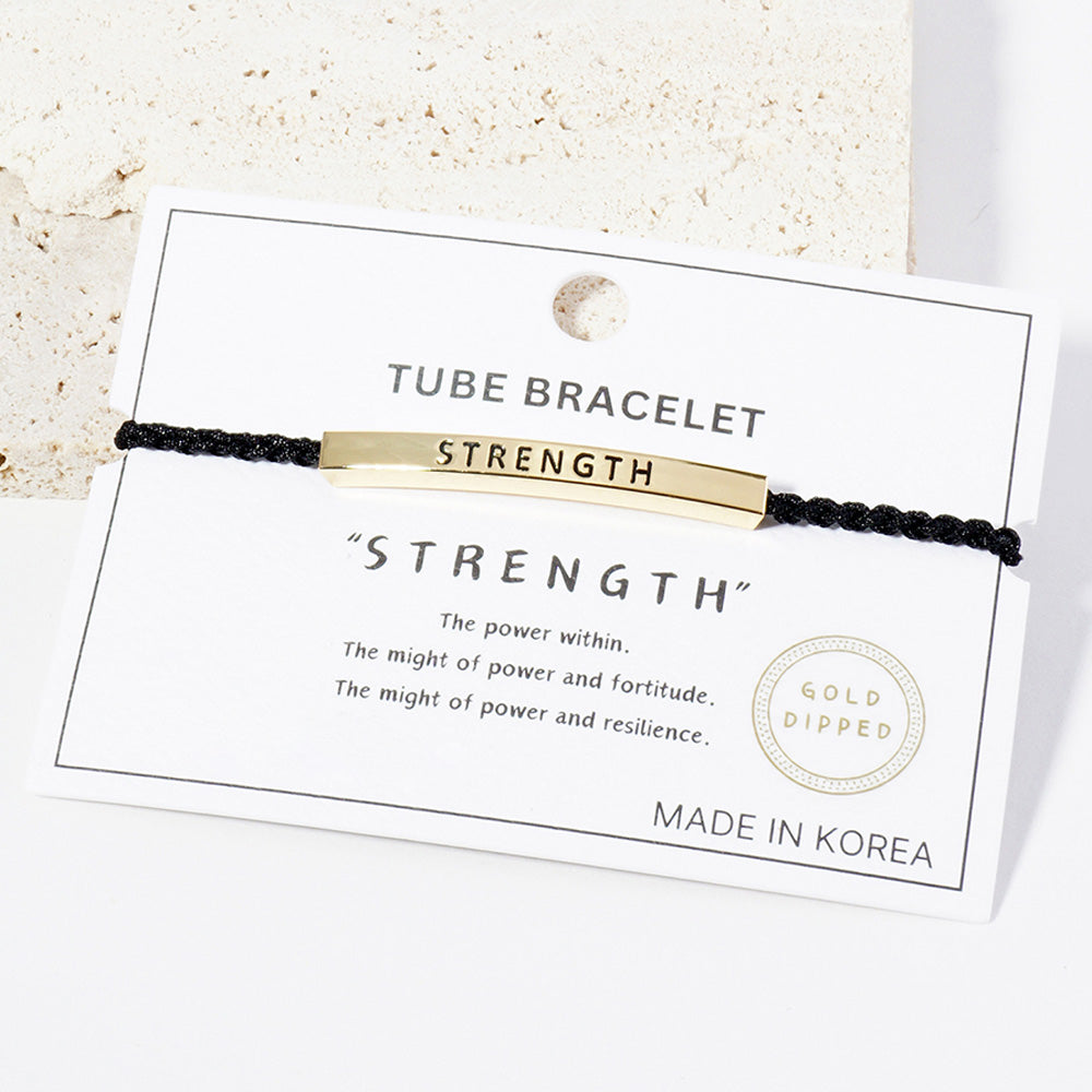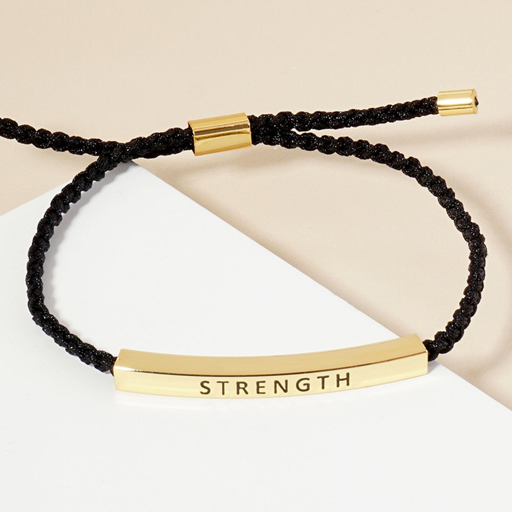 iLLASPARKZ Gold Dipped STRENGTH Message Bar Pointed Rope Adjustable Cinch Pull Tie Bracelet