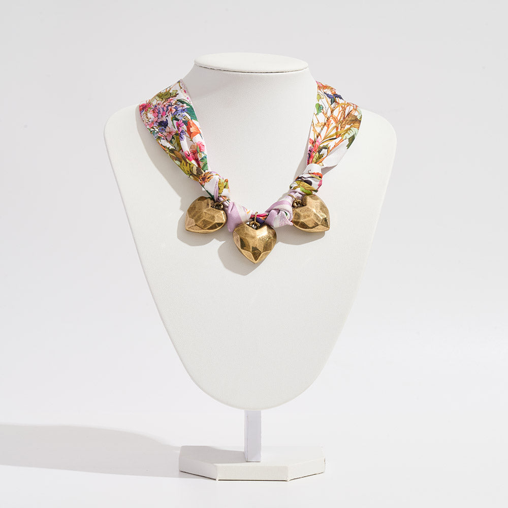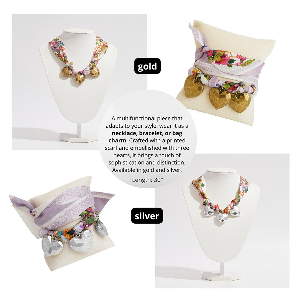 iLLASPARKZ Gold Dipped Triple Puffy Heart Charm Fabric Scarf Necklace / Adjustable Bracelet / Bag Charm
