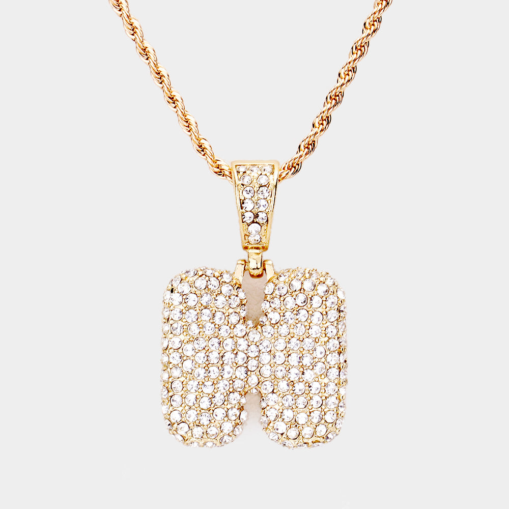 iLLASPARKZ -H- Rhinestone Monogram Pendant Brass Chain Necklace