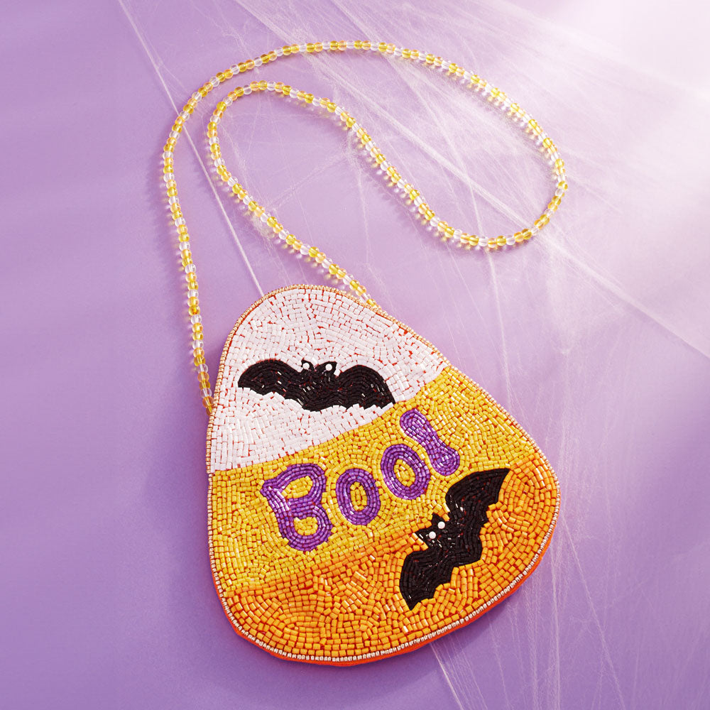 iLLASPARKZ Halloween Bat Boo Message Beaded Mini Crossbody Bag