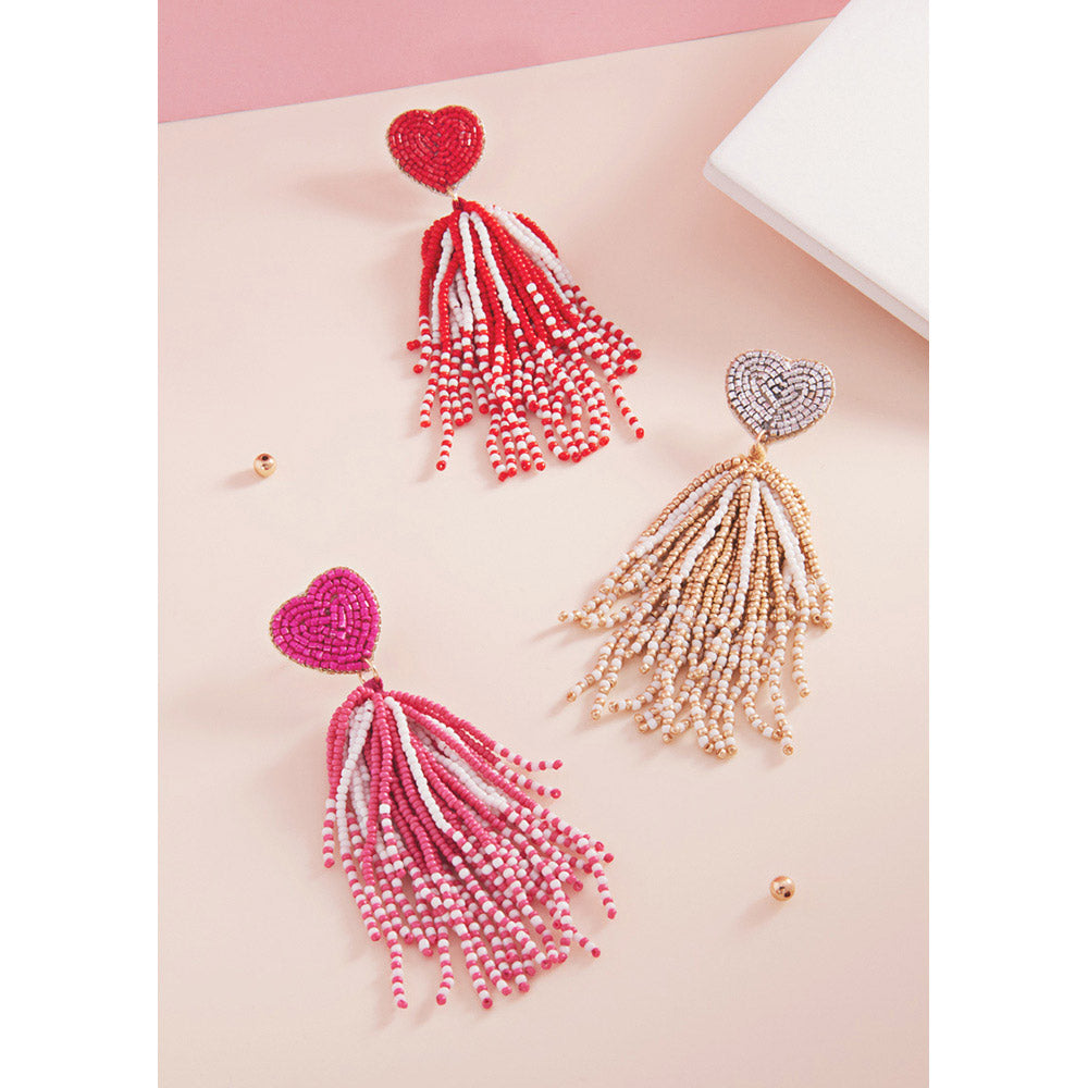 iLLASPARKZ Heart Seed Beaded Tassel Dangle Earrings
