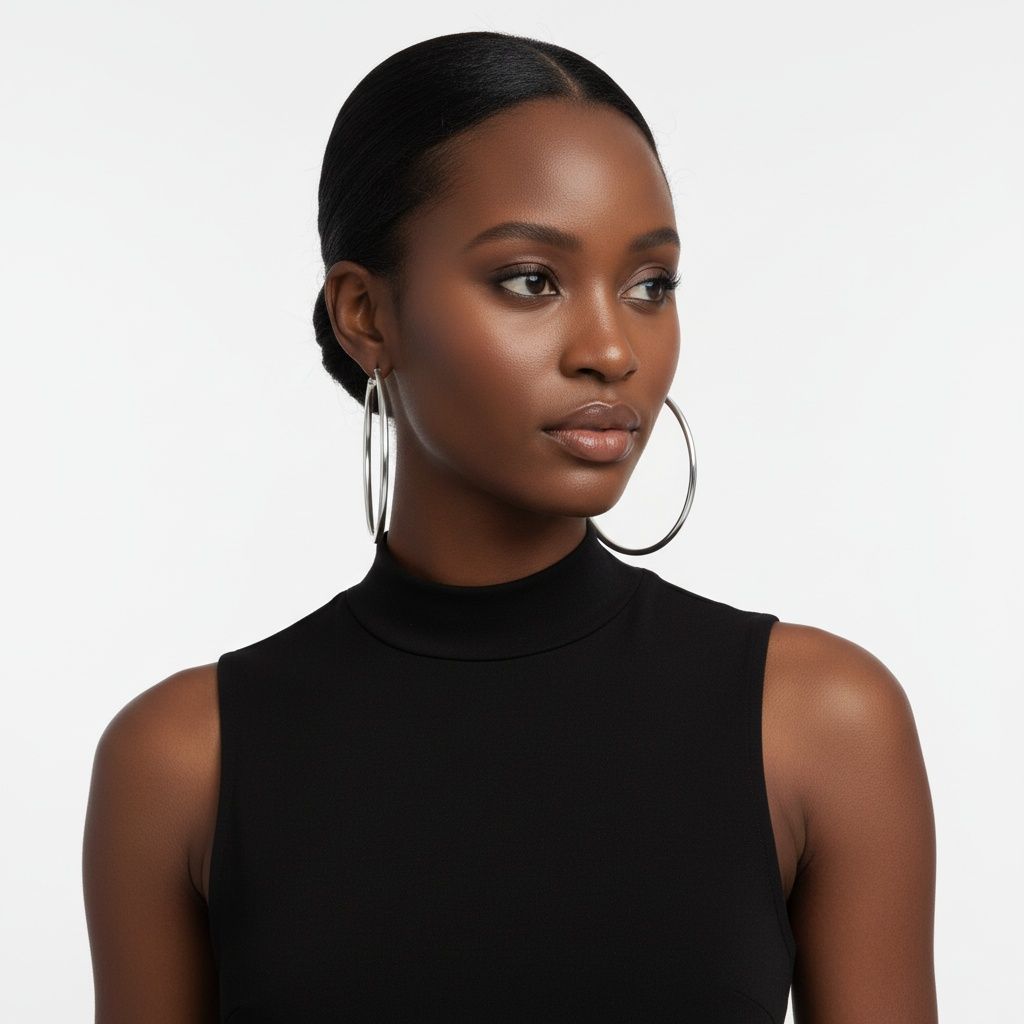 Women's Hoop Earrings. Classic Large 100mm Silver Metal Pipe Hoop Earrings. 5mm Thick. Latch Closure.