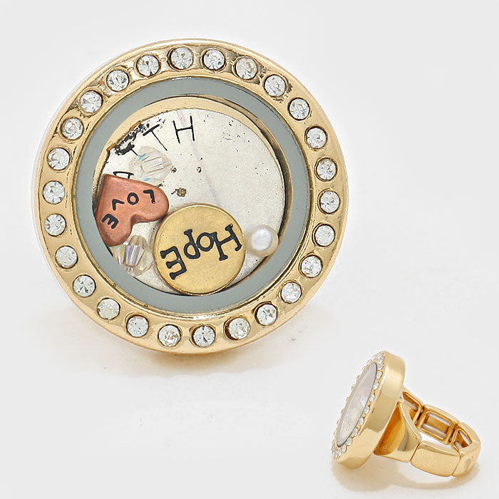 iLLASPARKZ "Hope Love" Cross Crystal Floating Locket Stretch Ring