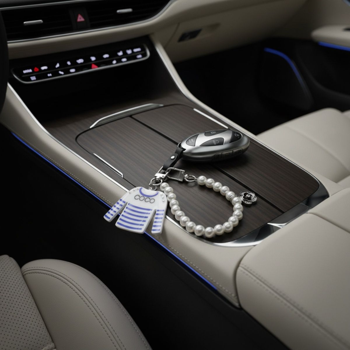 Keychain White Blue Stripe COCO Shirt Pearl Clip