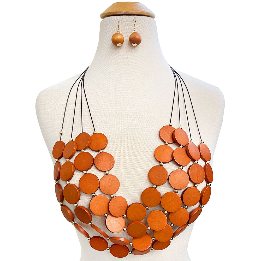iLLASPARKZ Layered Wood Disc Layered Statement Necklace