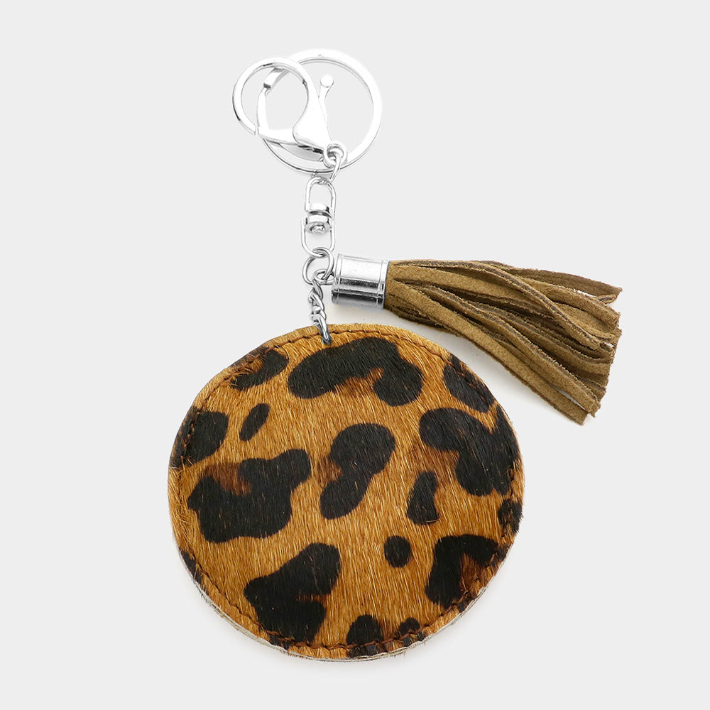 iLLASPARKZ Leopard Patterned Genuine Fur Calf Round Tassel Keychain