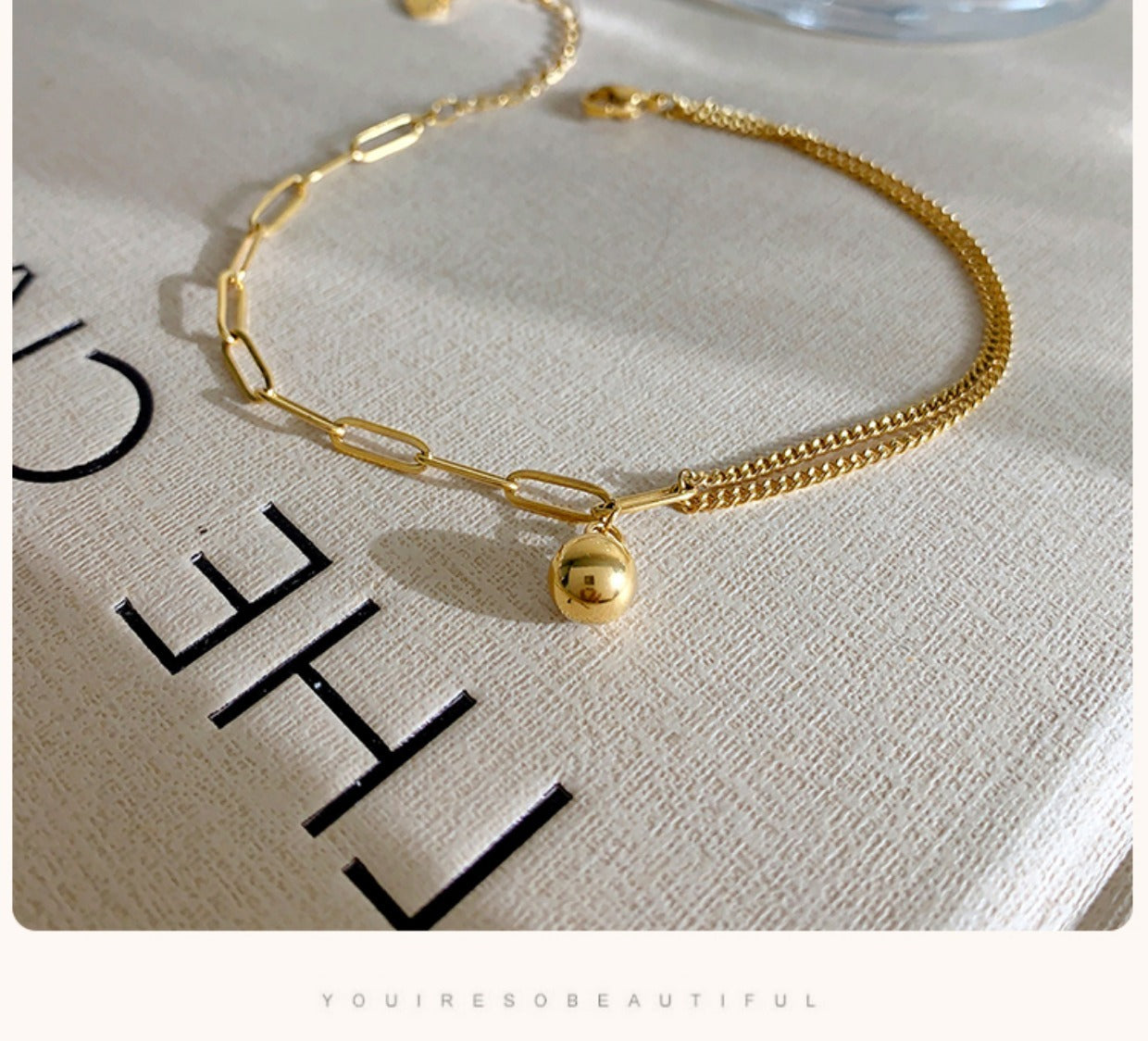 Simple and versatile: The small gold spheres are evenly embellished throughout the anklet, creating a delicate and elegant look that sways with every step, adding a touch of class to your ankle.