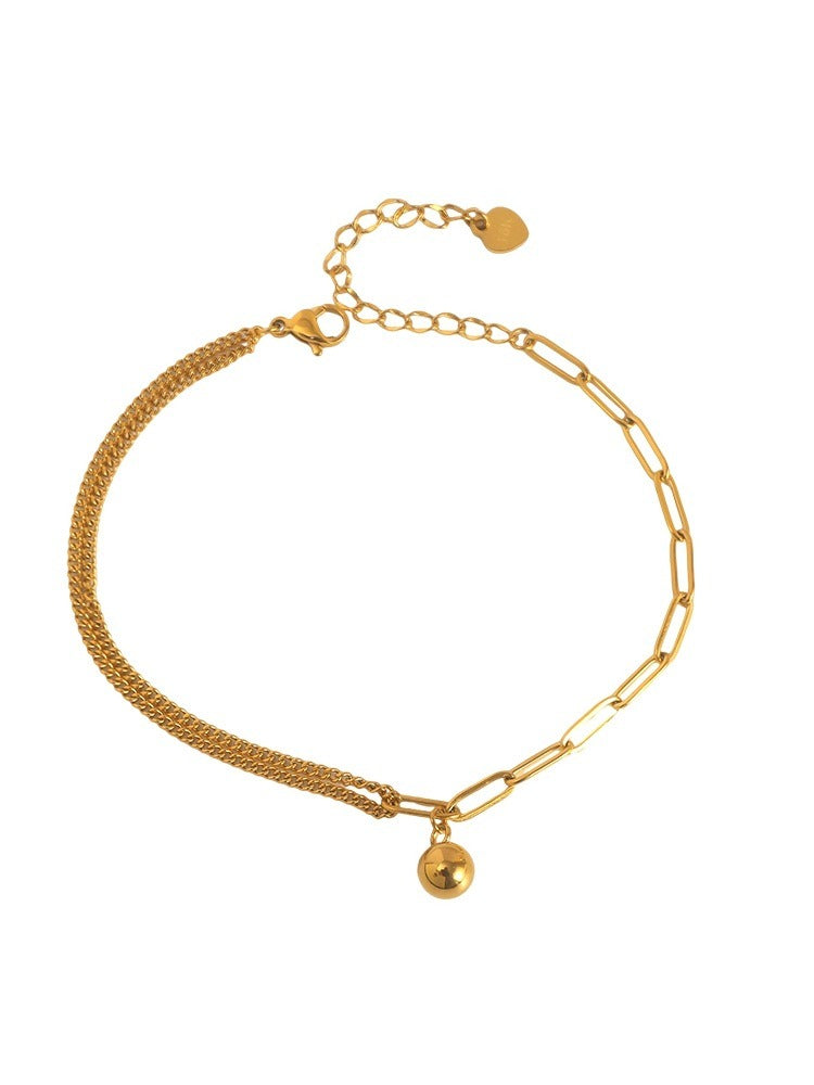 This lightweight 18K gold ball and titanium steel anklet perfectly combines the simplicity of a small gold ball with durable titanium steel. It's a must-have lightweight anklet for enhancing your everyday look.