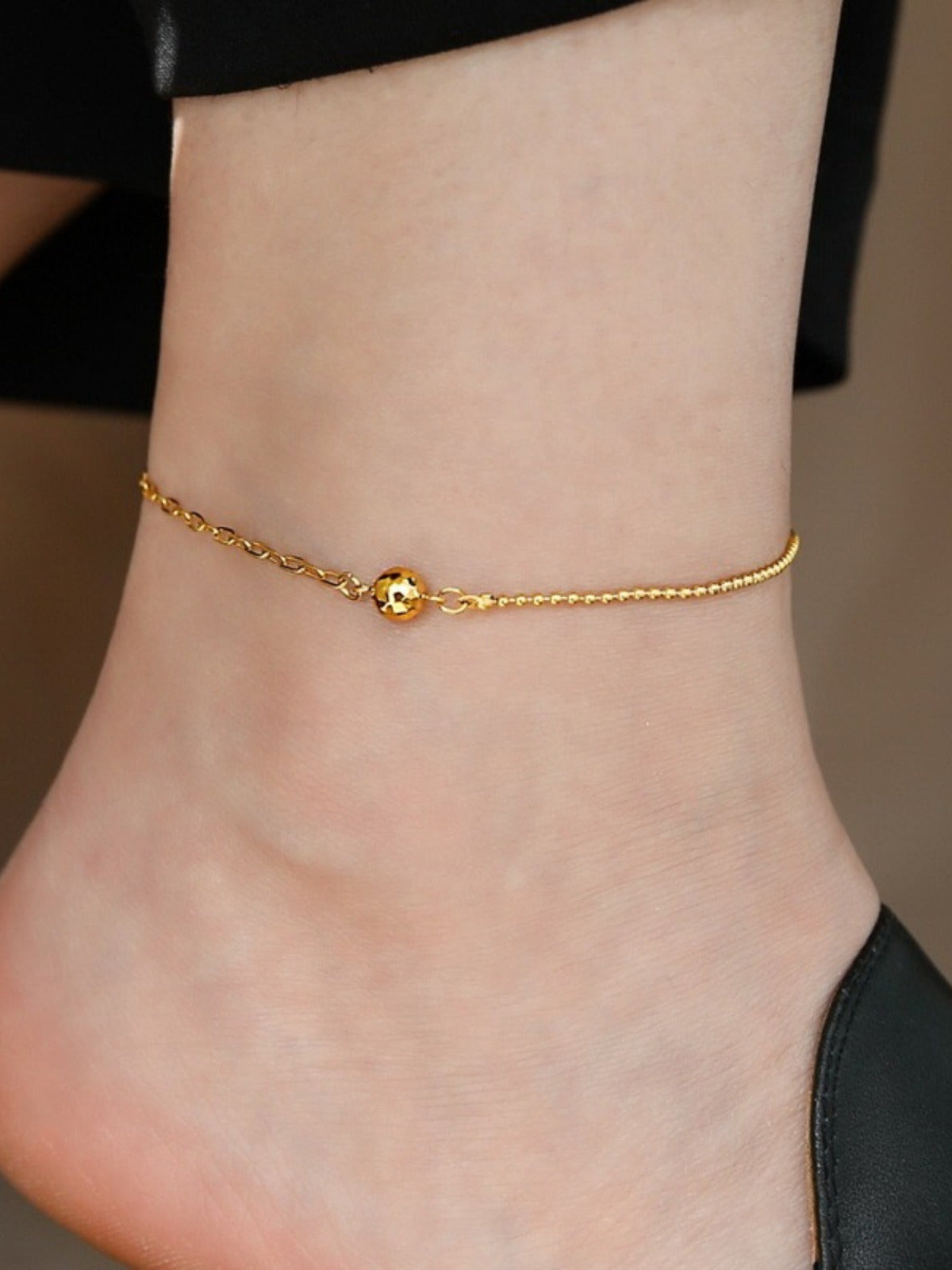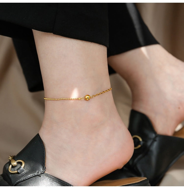 Luxury 18K Gold Anklet with Laser Beads and Chain