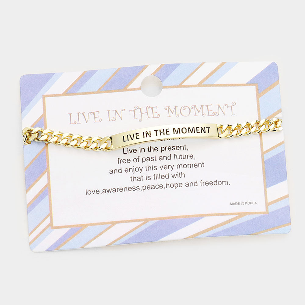 iLLASPARKZ LIVE IN THE MOMENT Curved Metal Bar Message Bracelet