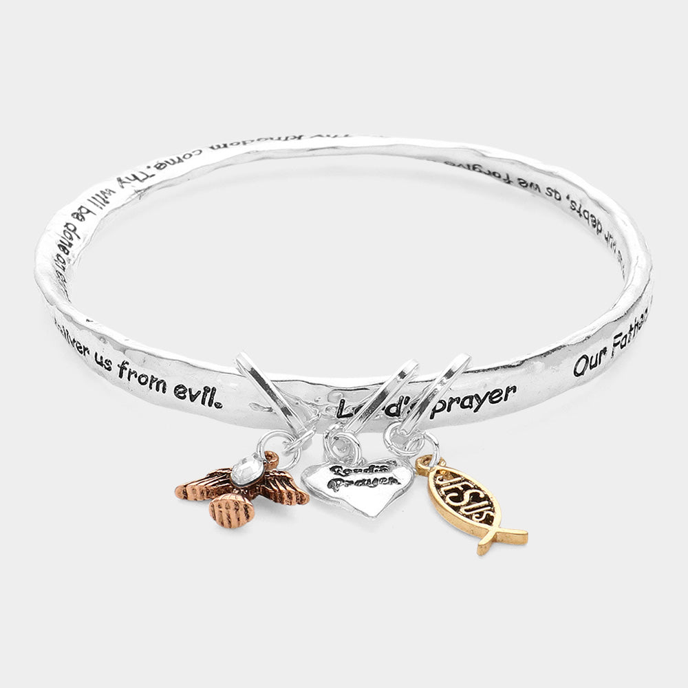 iLLASPARKZ Lords Prayer Message Angel Wing Heart Jesus Charm Bangle Bracelet