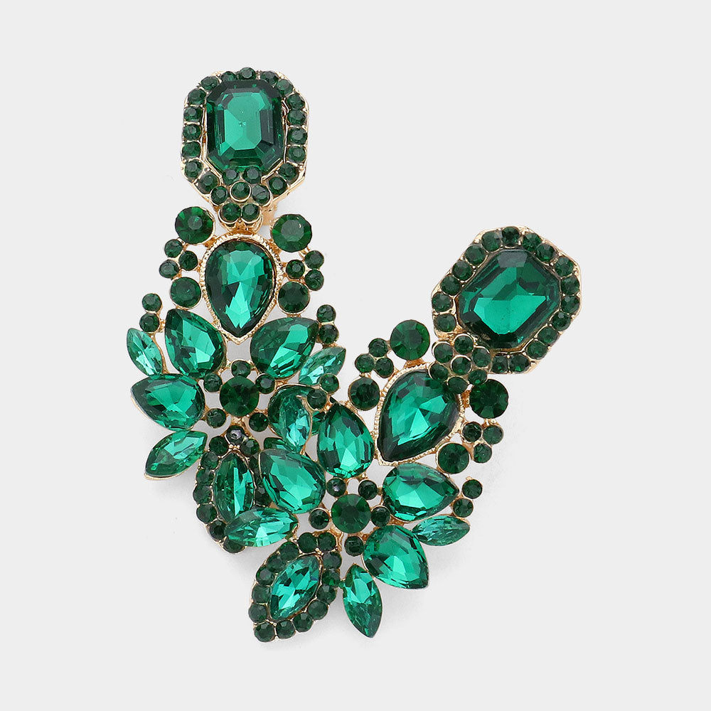Add instant glamour with these floral-inspired clip-on earrings, adorned with a dazzling arrangement of faceted stones in layered petal shapes. Designed to catch the light from every angle, they bring elegance and bold sophistication to special occasions.