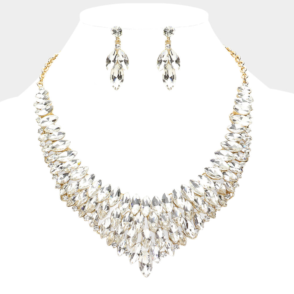 iLLASPARKZ Marquise Stone Cluster Embellished Collar Evening Necklace
